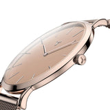 The Constance quartz watch is a stunning timepiece that deserves to be shown off. With its liquid peach watch face and slim hour markers, this gorgeous timepiece will be the star of your accessories collection. Perfect for both casual and formal wear, this women watch can dress up your office attire or accent your evening wear.