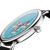 Meticulously engineered for quality, this modern watch offers both precision and character. This stunning timepiece showcases bold features, including a polished enamel dial with three contrasting subdials and the coveted day-date indicator—driven by the classic Japanese-made quartz movement, the Miyota 6P29. Chicago-designed, this watch was built to last with a high-grade 316L stainless steel case and scratch-resistant sapphire crystal. Completed with an interchangeable, vegetable tanned Horween Leather strap that ages beautifully overtime for a versatile timepiece that can be dressed up or down.