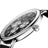 Meticulously engineered for quality, this modern watch offers both precision and character. This stunning timepiece showcases bold features, including a polished enamel dial with three contrasting subdials and the coveted day-date indicator—driven by the classic Japanese-made quartz movement, the Miyota 6P29. Chicago-designed, this watch was built to last with a high-grade 316L stainless steel case and scratch-resistant sapphire crystal. Completed with an interchangeable, vegetable tanned Horween Leather strap that ages beautifully overtime for a versatile timepiece that can be dressed up or down.