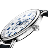 Made for the modern gentleman, this polished enamel dial was designed to highlight the raised numerals and indices for a thoughtful, sophisticated look. The three contrasting subdials with refined date, day, and 24 hour wheels enhance the face for extra visibility, while keeping you on time, every time.