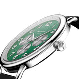 Meticulously engineered for quality, this modern watch offers both precision and character. This stunning timepiece showcases bold features, including a polished enamel dial with three contrasting subdials and the coveted day-date indicator—driven by the classic Japanese-made quartz movement, the Miyota 6P29. Chicago-designed, this watch was built to last with a high-grade 316L stainless steel case and scratch-resistant sapphire crystal. Completed with an interchangeable, vegetable tanned Horween Leather strap that ages beautifully overtime for a versatile timepiece that can be dressed up or down.