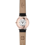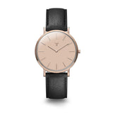 Designed for the modern woman, this sophisticated 36.5mm timepiece is complemented by our environmentally conscious vegan leather watch strap. Designed in Chicago, this minimal watch features a clean white dial set in a polished rose gold case with matching hands and elevated hourly tick marks to complement any wardrobe. The featured animal-friendly vegan leather strap is interchangeable for a look that’s sure to make a statement.
