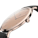6.5mm thick and 36.5mm diameter. We engineered it to be as slim as possible. This two-hand watch can easily be the most versatile timepiece in your wardrobe, making it perfectly suited for a board meeting or Sunday brunch.